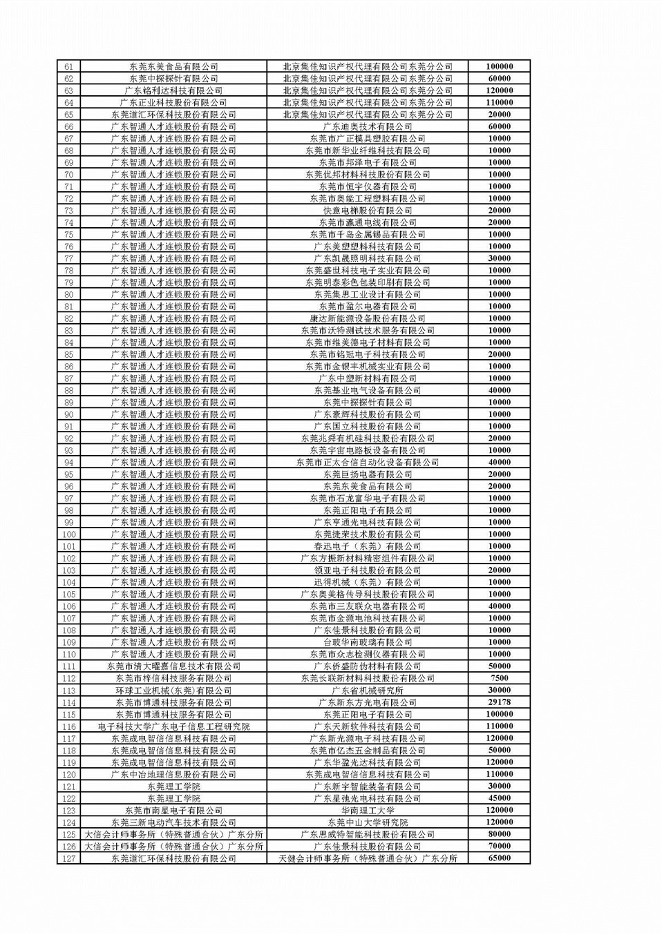 1、2016年度东莞市科技创新券兑现项目补助资金情况表